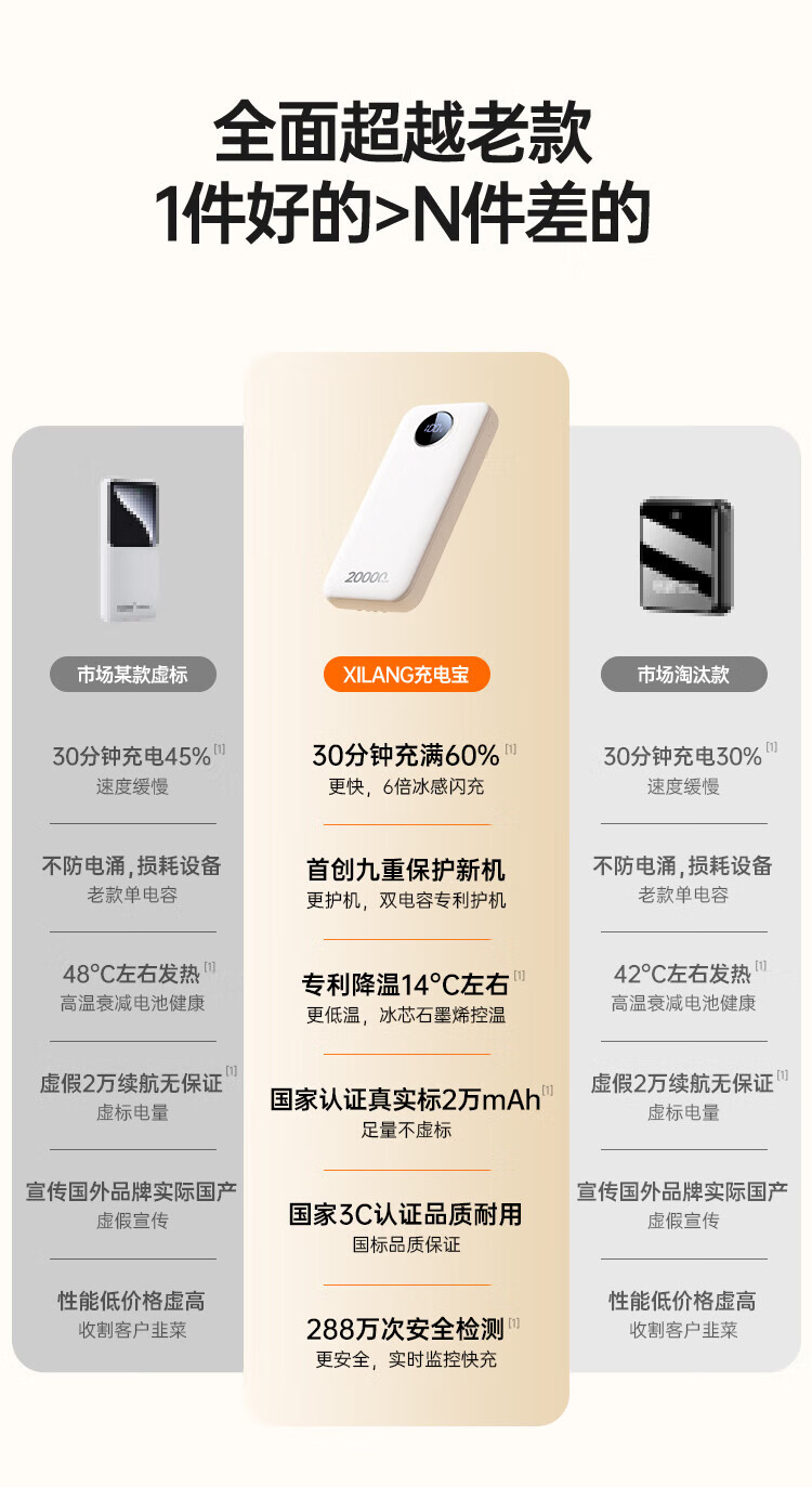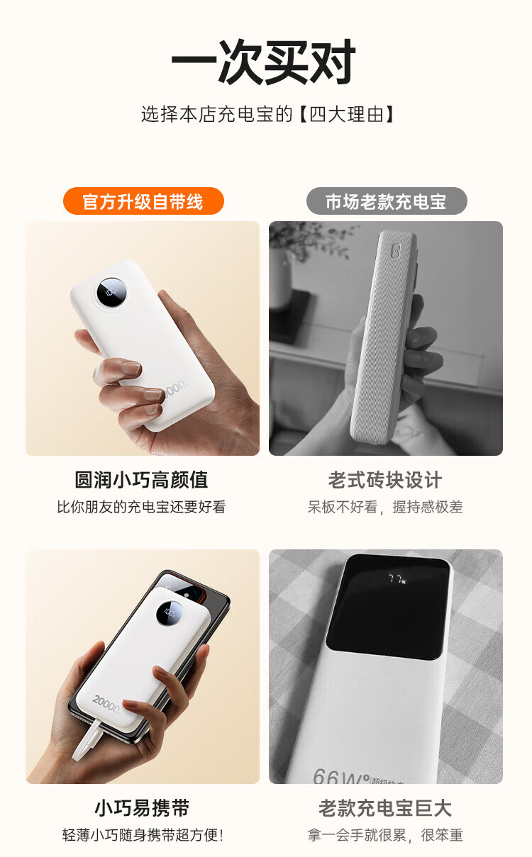 京东京造充电宝3c认证可上飞机30W自带线20000毫安大容量京东自营快充移动电源