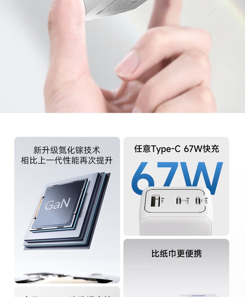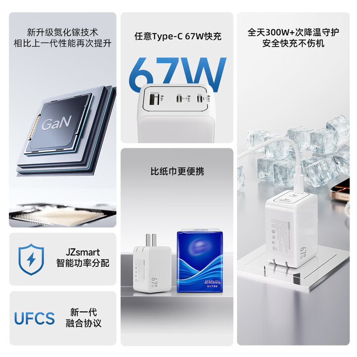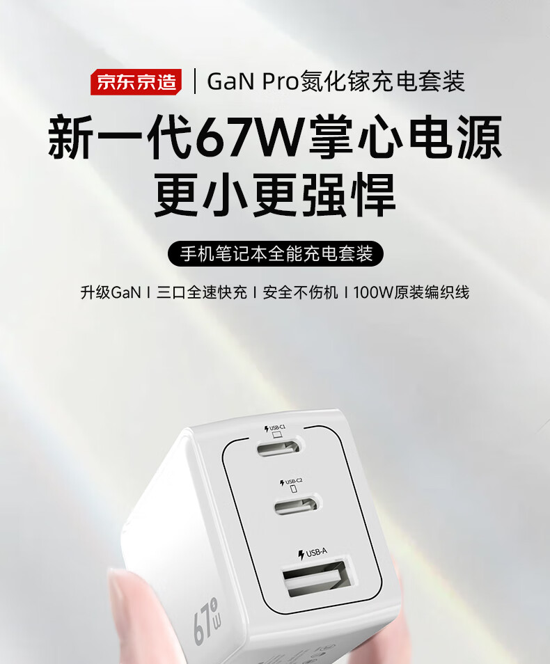 京东京造67W氮化镓充电器套装Type-C多口快充头兼容65W支持vivo44W快充适用苹果华为小米荣耀手机笔记本