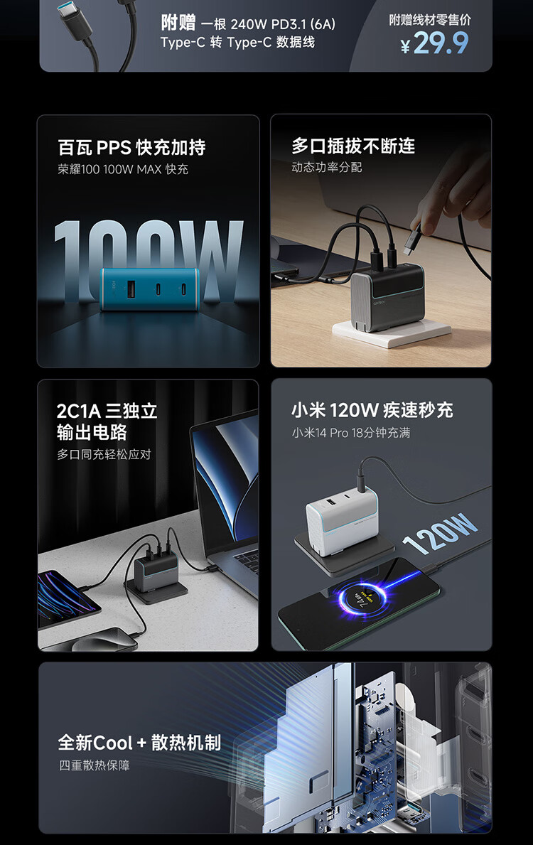 CUKTECH酷态科10号氮化镓充电器套装120W/100W三口快充头