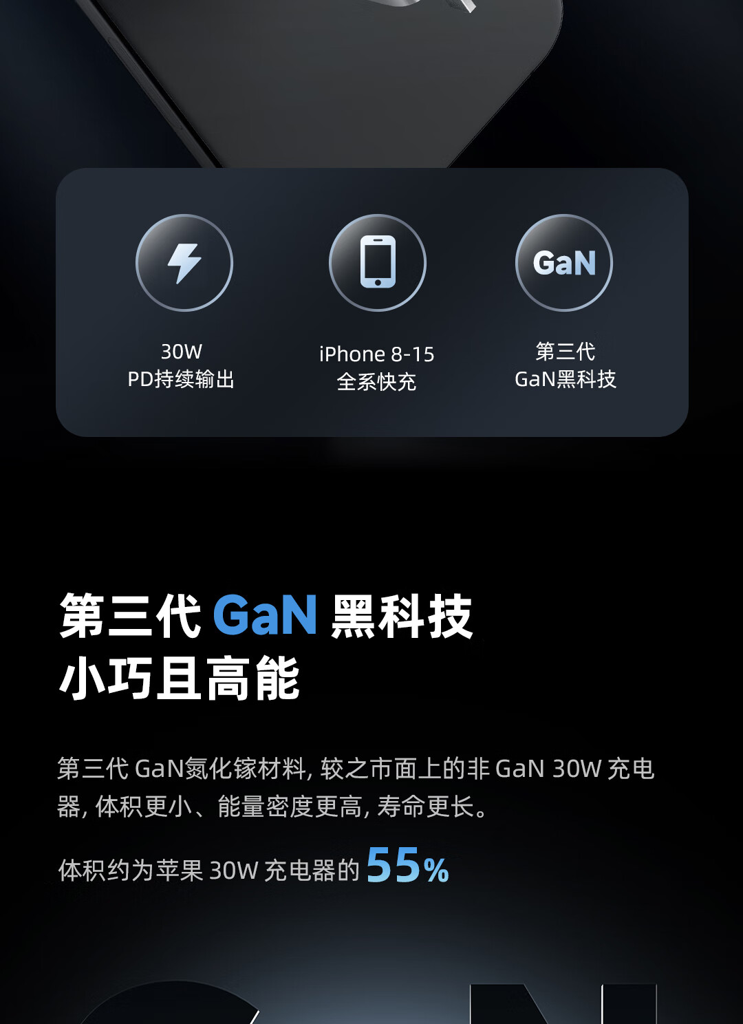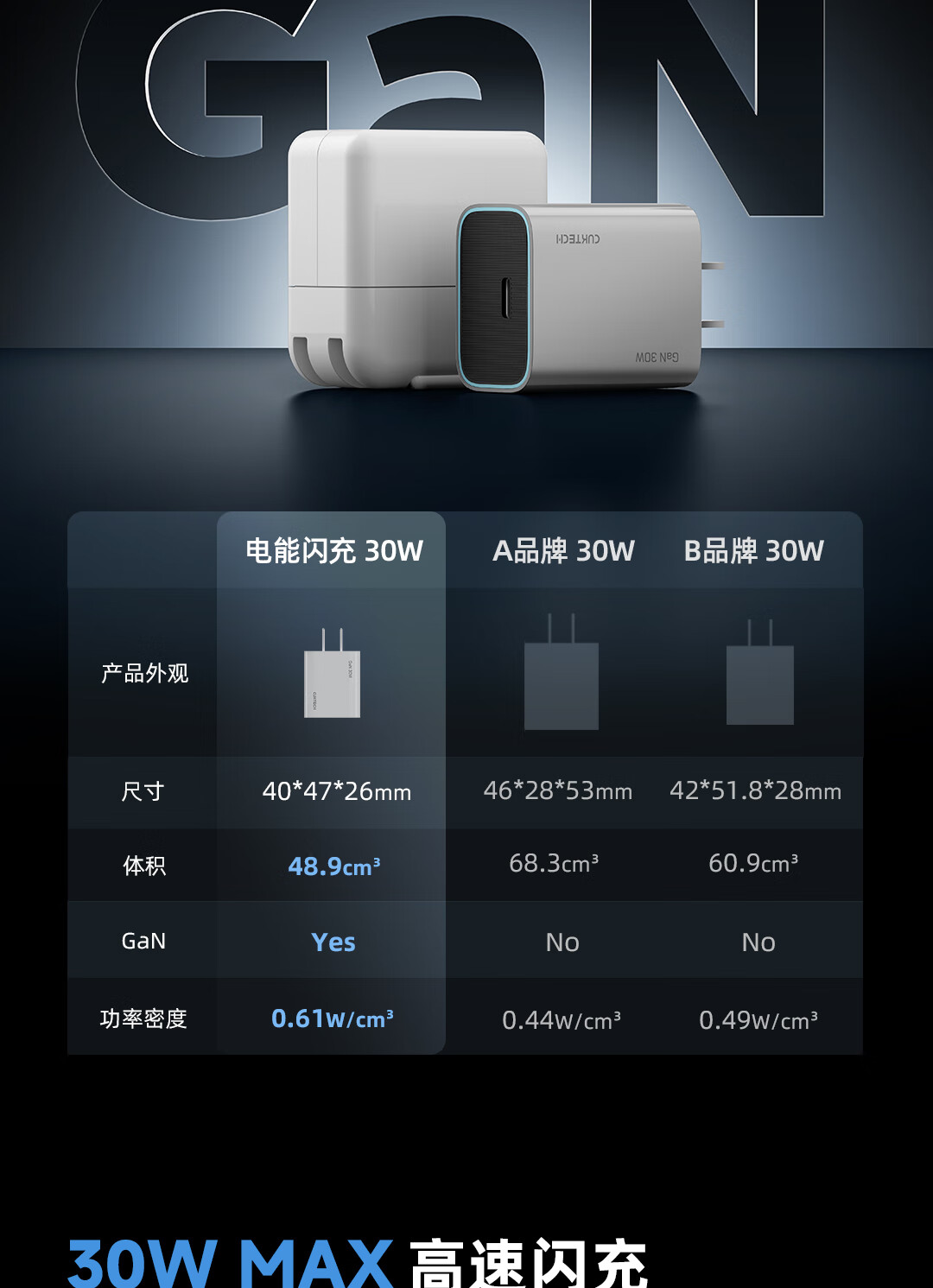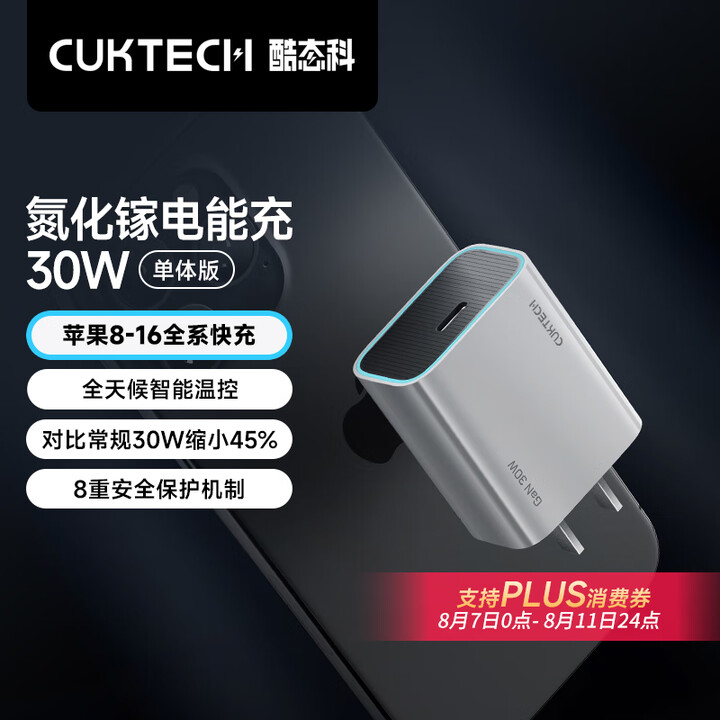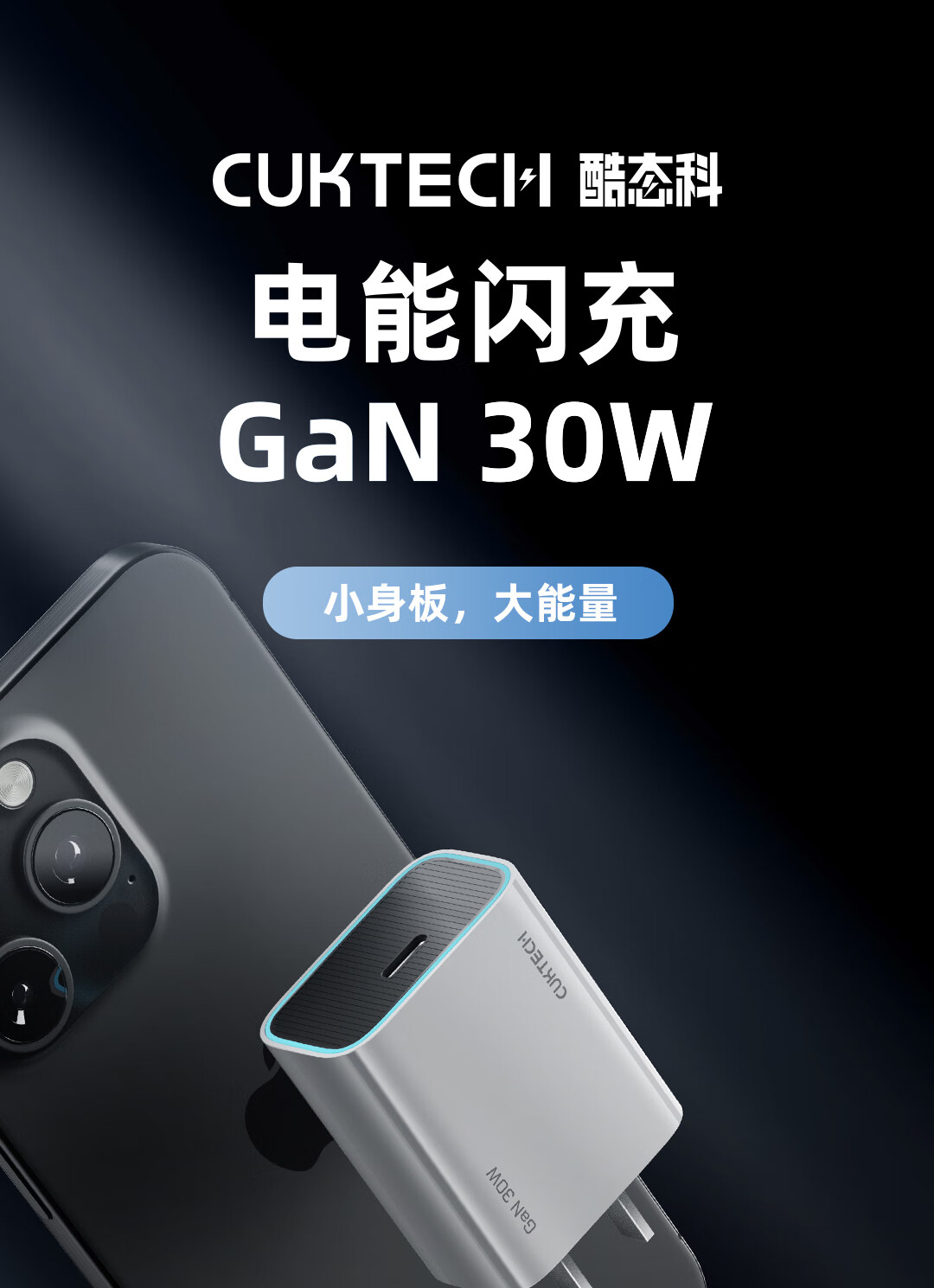 CUKTECH酷态科 氮化镓充电器PD30W兼容20W充电头快充iPhone16/15/14手机平板Type-C